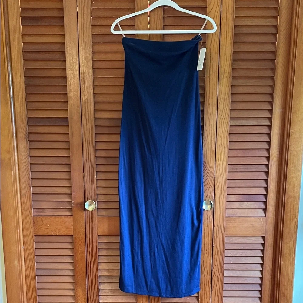 Ribbed strapless maxi dress from the Target brand a new day. True navy blue color. Built in shelf bra. Size small. NWT, never worn.