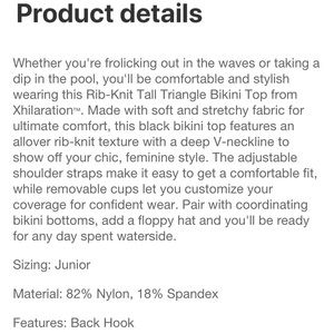 Xhilaration Juniors’ Ribbed Tall Triangle Bikini Top - Large