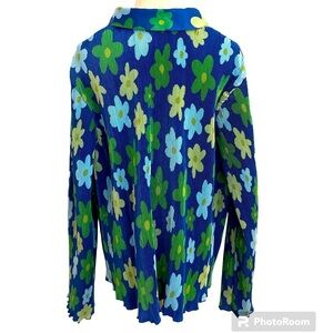 Target × Sammy B Collab Blue Floral Plus Size Pleated Button Down Shirt Size 1X in very nice used condition. This long sleeve shirt is a beautiful shade of blue with bright green and light blue flowers. Made from soft, lightweight fabric, this long-sleeve button-down shirt is decorated with allover floral print on its textured blue fabric. Designed with a below-waist length and a full-length front button-down closure, it makes a versatile pairing with any of your favorite pairs of pants. Measurements lying flat are approximately 24” inches underarm to underarm and from shoulder to hem approximately 25” inches. Super cute 💙
