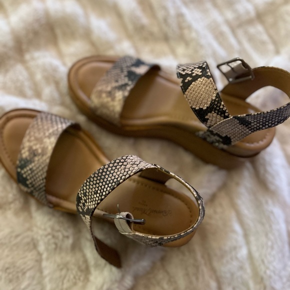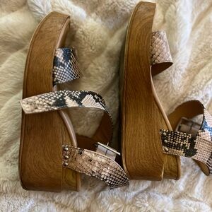 Stylish wedges with a snakeskin pattern. Adjustable ankle strap. Comfortable wedge heel.