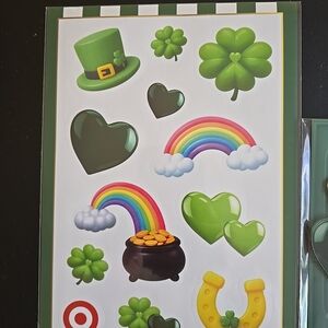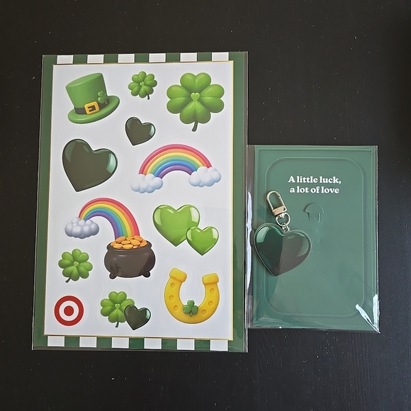Celebrate St. Patrick's Day with this festive sticker and keychain set. Includes green-themed stickers and a matching keychain.