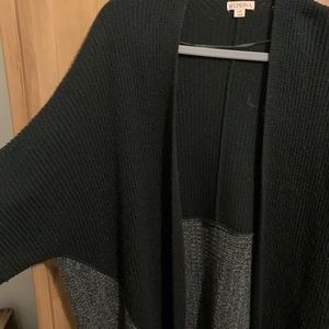 Long tunic length sweater/shrug. Only worn a couple times. Black on top/grey on the bottom!