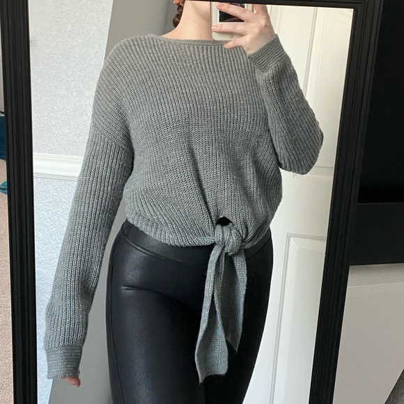 Super cute, gray sweater from Target! You can tie it tighter to be more cropped as well :)