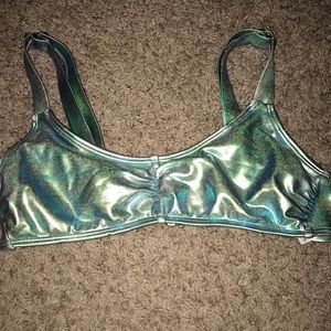 Top is not padded, adjustable straps. Top is size Small, bottoms are XS. Worn a few times.