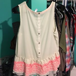 Off white color with pink outlining but missing one button as seen on the picture otherwise it's perfect.