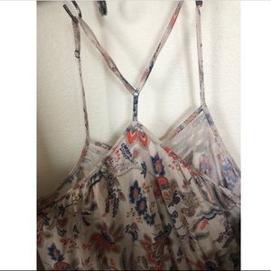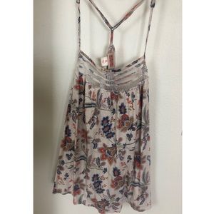 Adorable patterned tank top with mesh neck line. Has a babydoll fit and adjustable straps so you can alter to fit how you like. Also looks cute with a knot tied in front and worn as a crop top.