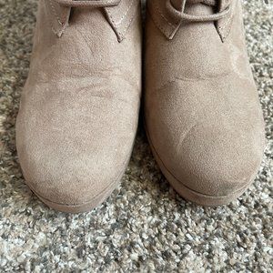 Target Taupe Wedge Ankle Bootie with Laces, Size 9.5