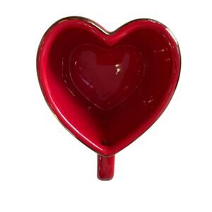Fall in love with your morning coffee using this brand new Threshold Valentine Red Heart-Shaped Mug 2-Pack! Each 14.3 oz ceramic mug features a romantic red heart shape with an elegant gold rim—perfect for Valentine's Day, anniversaries, or everyday love. These adorable mugs are ideal for coffee, tea, or hot cocoa and make a sweet gift for someone special. Hand wash only. Whether you're a mug collector or just looking to add charm to your kitchen, this set is a must-have!