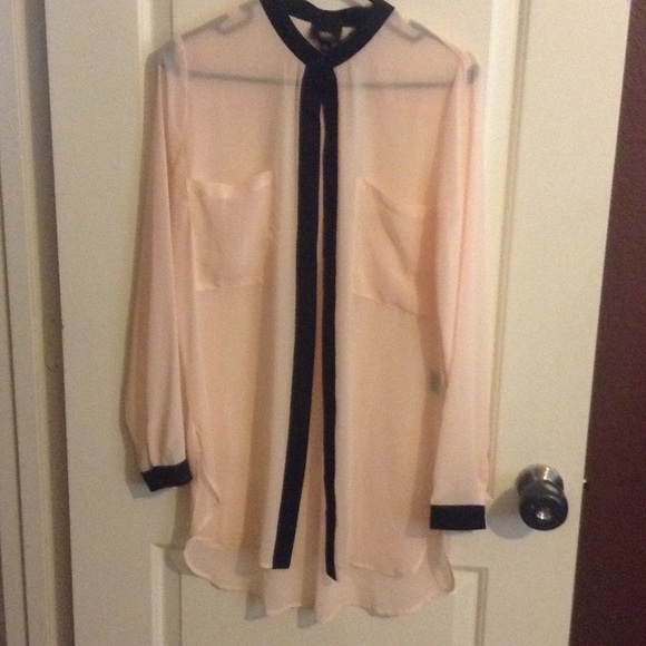 💋Very light pink/cream color with black accents ❤️Long oversized Blouse 💋Adorable fit ❤️Never worn 💋Sheer ❤️Make me an offer 😊