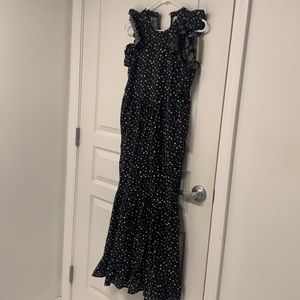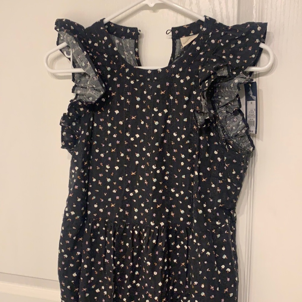 Universal thread dress. Ruffled shoulder sleeves. There is a pleat at the bottom. Never worn