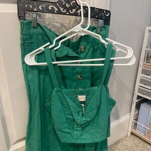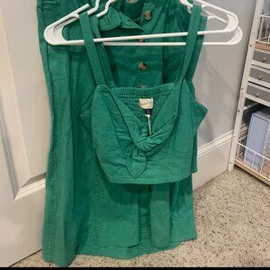 Two sizes in the two tops: XS and S, Top is new with tags. Entire set is unworn! The skirt is a S!