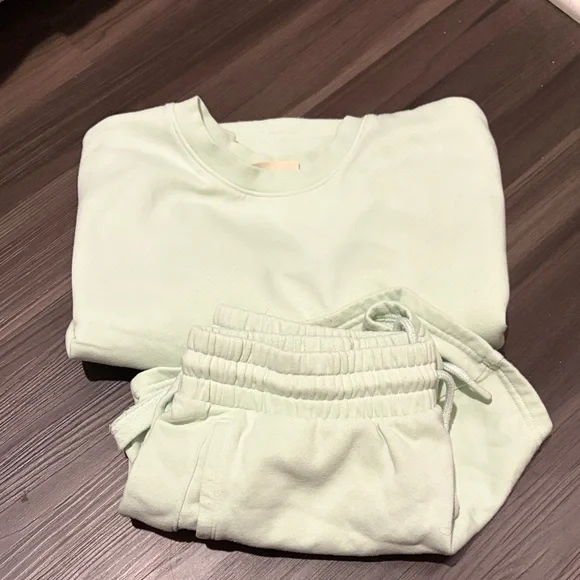 Light blue perfect condition. Top is XS. Bottoms are XS. Short sleeve top and shorts.
