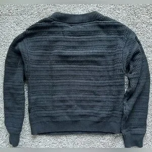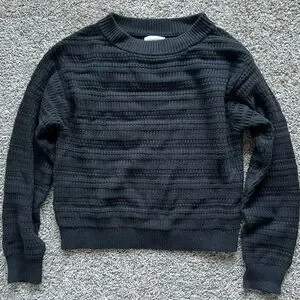 Black, size small cable knit sweater. Collar is wide, not cropped, hip length, true to size, relaxed fit.