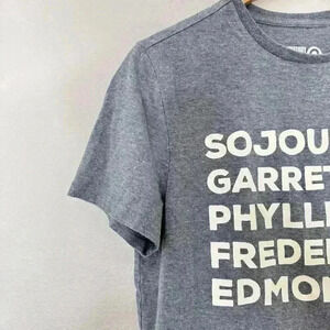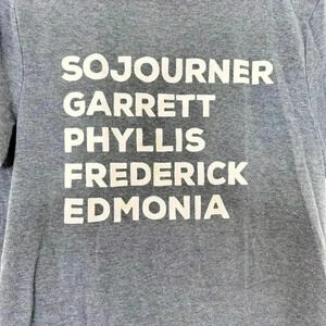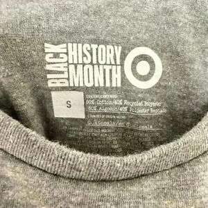 This Target T-shirt is the perfect addition to your wardrobe. It features the names of famous black women and men on both the front and the back, making it a great choice for Black History Month or any day. The shirt is made of a comfortable cotton blend and has a crew neckline with short, casual sleeves. It is a size small and has a solid gray pattern. This basic style T-shirt is perfect for any occasion and can be paired with jeans or a skirt.