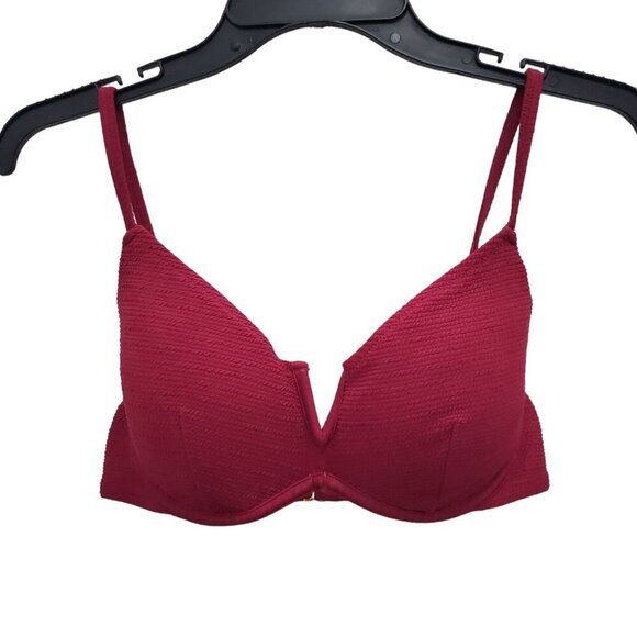 Target Women's Burgundy Textured Plunge Neck Underwire Swim Top Bikini Size 34C