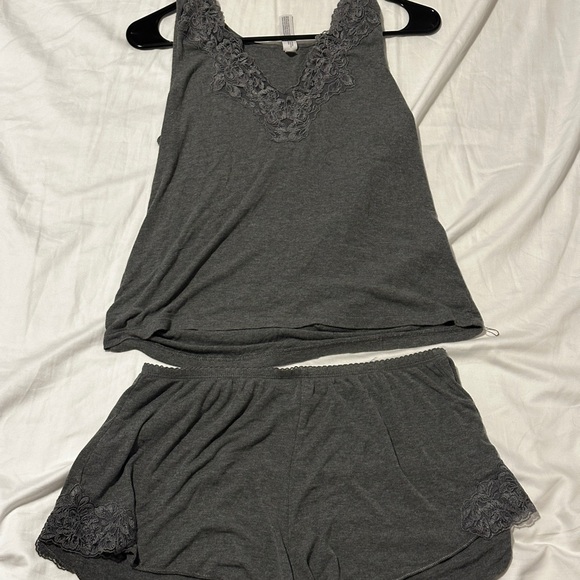 Soft charcoal pajama set with elegant lace trim. Perfect for a cozy night's sleep.