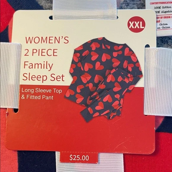 Charming sleep set with red heart design. Includes long sleeve top and pants.