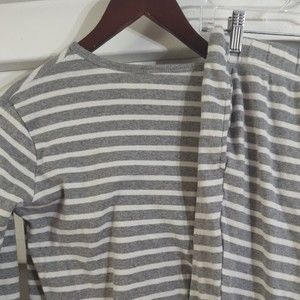 Target Women's Small Gray & White Striped Cotton Pajama Set 2 Piece pockets.