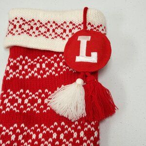 Target Wondershop Knit Christmas Stocking Red White Tassel Monogram L