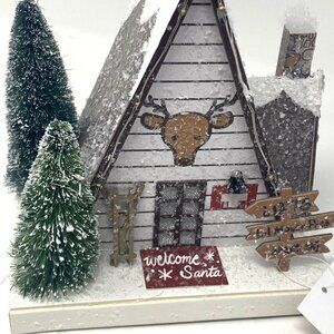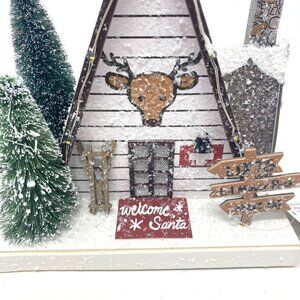 Target Wondershop Lit Paper Ski Lodge Bottle Brush Trees Christmas Village