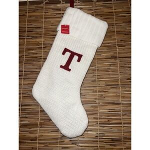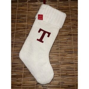 Target Wondershop White Knit Christmas Stocking Red Letter Initial "T" 18" NWT