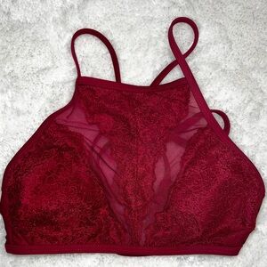 Target Xhilaration red lacy mesh padded small high neck bikini top