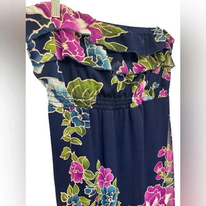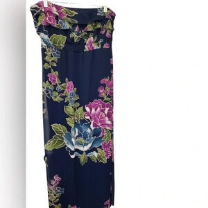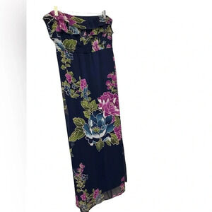 Target Xhilaration strapless blue floral maxi dress. Size XL. Chiffon floral overlay with navy lining. Elastic top and waist. Riddle at top.