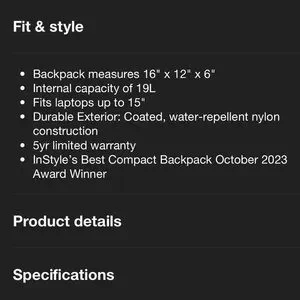 Used but in good condition! Can be wiped down and cleaned. The backpack is so spacious!