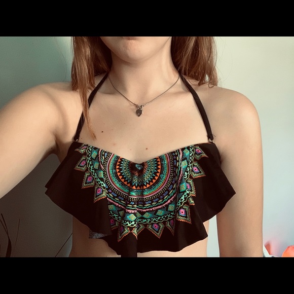 Flounce top with removable halter straps and removable pads