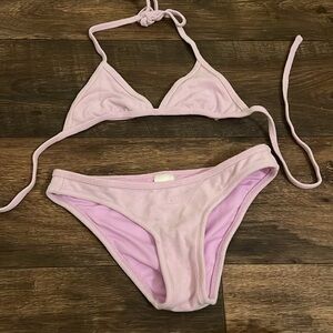 Ivory bikini and lilac terry cloth bikini both size extra small price reflects bundle.