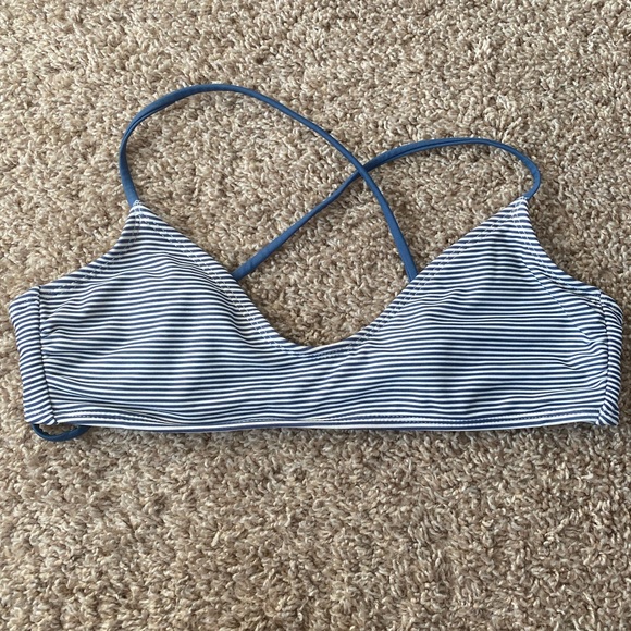 Striped, cross back bikini top