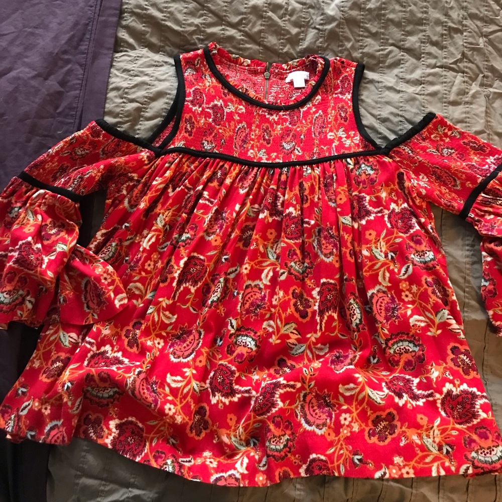 Summer, open shoulder blouse. Red with black lining