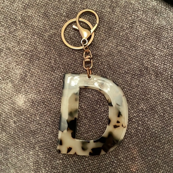 Target keychain in the shape of the letter D. Cheeta print. Rose gold clasp.