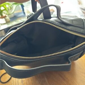 Sleek and stylish black leather men's bag, perfect for everyday use. 3 pockets total and straps. In excellent condition.