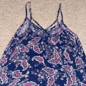 Super soft tank top with a base navy color and pink designs. Adjustable straps and cross straps in the back.