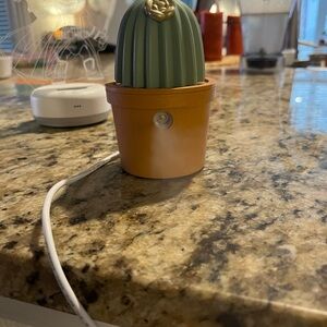 Mini diffuser from Target, comes with charging cable. Once charged can be used anywhere! I used it in my car when I was on my way home from work.