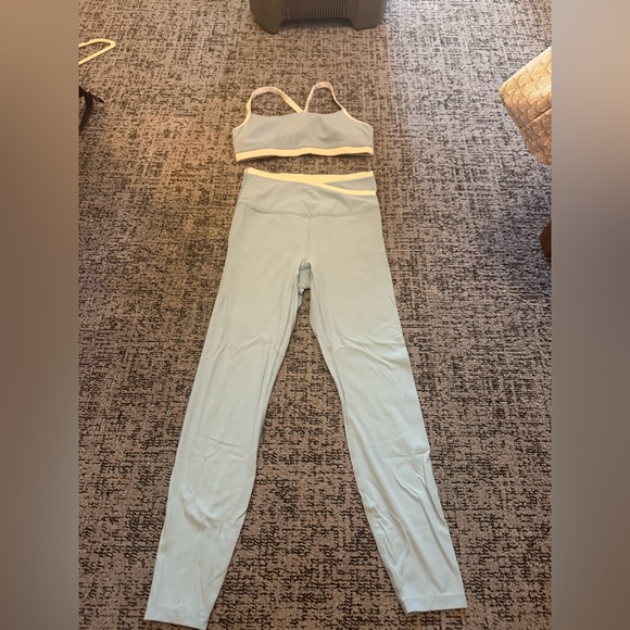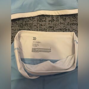 Blue leggings with white crossover band in the front. So soft and only worn maybe 3 times. Can sell both pieces seperate if interested! No signs of wear and no pilling
