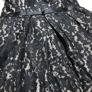 Stunning dress with black lacy overlay with tan slip/tulle underneath. Perfect for a dance or a holiday party!