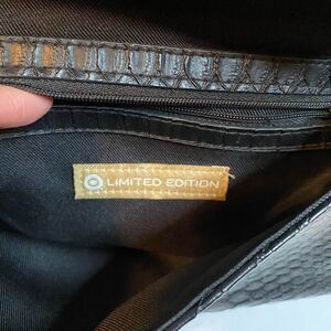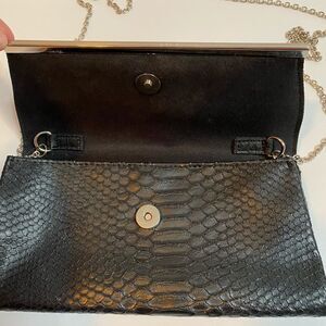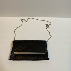 Barely worn. Clean inside and out. Black clutch with chain that can be tucked inside. Snakeskin embossing.