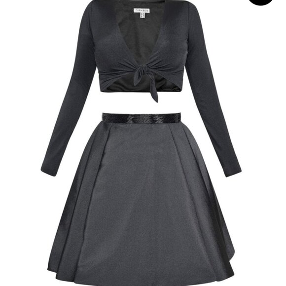Tarik Ediz Women's Black Tie in Front Top Long Sleeve Shirt/Skirt Bundle Size 6