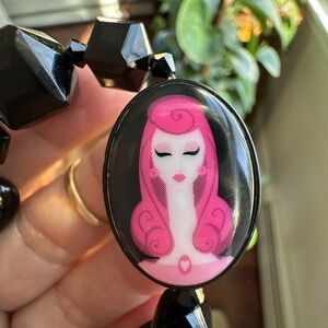 With Bow, Heart, Cubes & Red Pink Haired Contemporary Cameo Lady