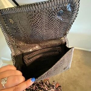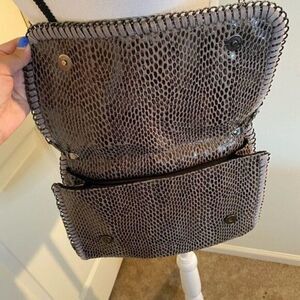 Tarnish womens dark grey crossbody bag w/ chain and inside pocket magnet closure