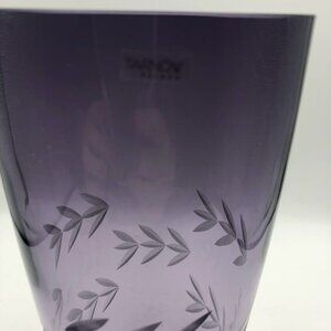 Tarnow Poland Purple Floral Etched Glass Vase Weight Bottom