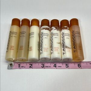 Tarocco set featuring nourishing shampoo, conditioner, four moisturizers, and body wash. Infused with Sicilian blood oranges.