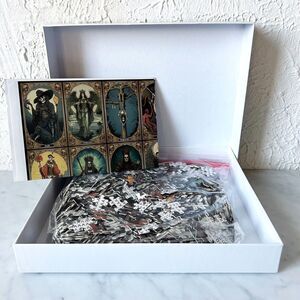Tarot Cards puzzle is complete and in excellent condition. Includes poster with description of each tarot card. 1000 piece puzzle; 19.7" x 27.5" (50 x 70 cm). Pieces stored in resealable bag. We put puzzles together before reselling. Please see the pictures for all the details.
