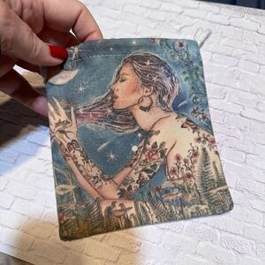 Tarot Oracle Cards Cloth Drawstring Storage Bag Tuck Your Cards away In this Beautiful Graphic bag for safekeeping Approximate Measurements Width: 5 1/2" Length: 6" Tags: Witchy, Crystals, Tarot, Oracle, Storage, Satchel, Magic, sublimation, charms,