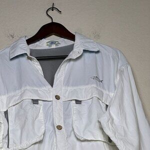 Tarpon Wear Button Up Summer Fishing Shirt Men M White Vented Lightweight Retro