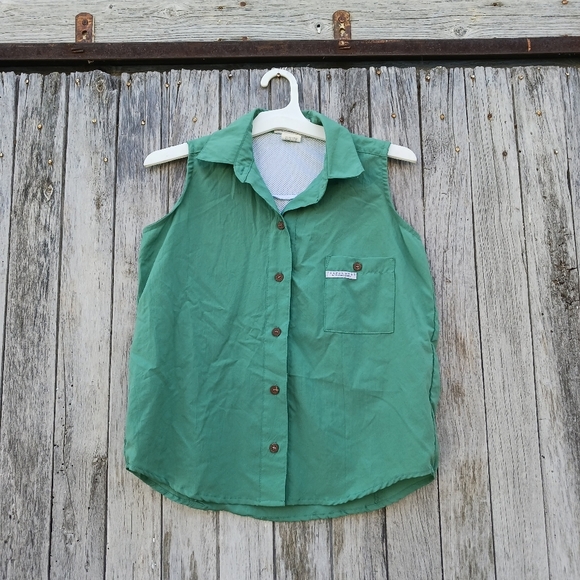 Tarponwear Womens Sz S Sleeveless Button Down Fishing Shirt Green