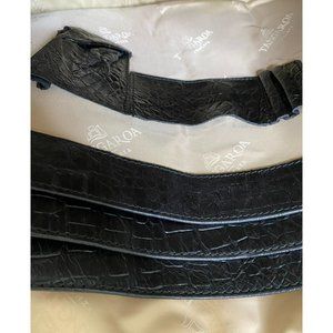 This Tarrida tote is the perfect accessory for any woman on the go. With its large size and multiple pockets, it's perfect for carrying a laptop, phone, and other essentials. The bag is made of genuine leather and features a glazed finish with an embossed Croc Design in the leather, gold-plated hardware, and double handles for easy carrying. The bag is designed with a zip closure and measures 18.5 inches in width, 13.5 inches in height, and 3.5 inches in depth. The interior is lined with beige fabric and features inner dividers, as well as a laptop sleeve/protection. The bag also has outer pockets for added convenience.