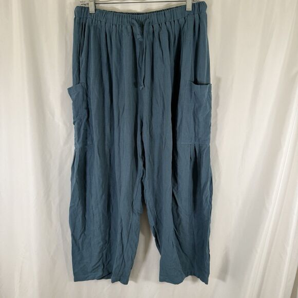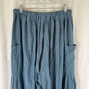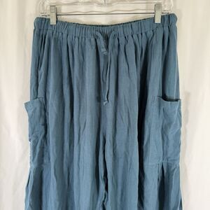 Tarse Pants Women's Medium Green Pull On Drawstring Cargo Pockets Linen